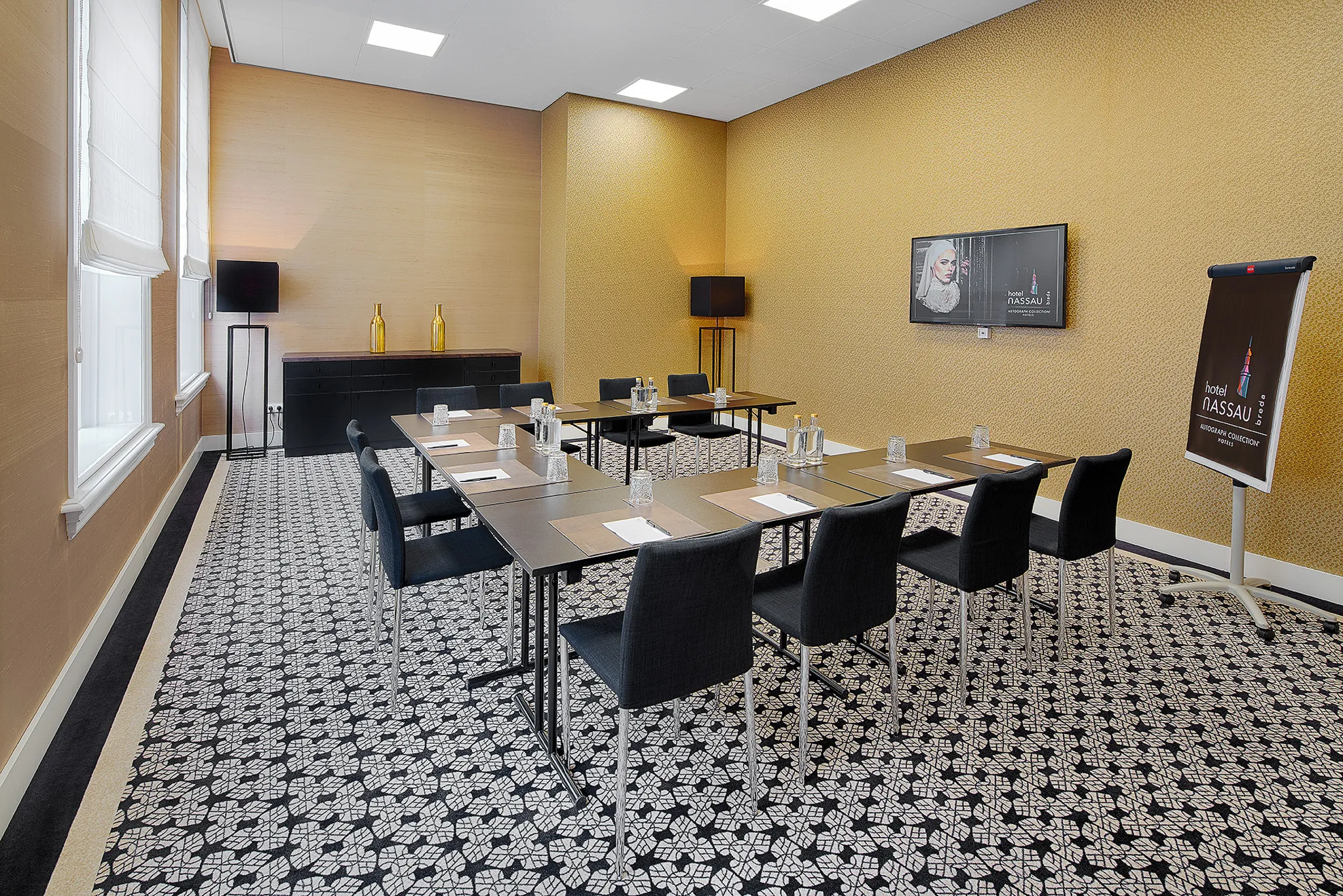 De Nassau Salon ademt elegantie en balans. Een prachtige ruimte voor kleinere presentaties, gesprekken of recepties.